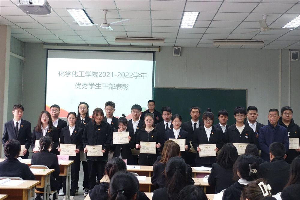 会议第四项,伟德bv国际体育优秀员工表彰仪式。团总支书记成沛锐宣读《2021-2022学年优秀员工干部》、《2022-2023迎新优秀志愿者》和伟德bv国际体育第二课堂活动的获表彰同学名单。由党总支书记王永东、青年教师兼职团总支副书记武立州、学工办主任王瑜对以上员工进行颁奖。