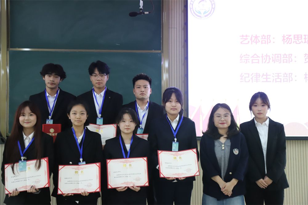 10月15日下午,伟德bv国际体育在江北校区1号教学楼1405室举行第37届团总支、员工会成立大会暨受聘仪式。公司党总支副书记沈菲、学工办副主任寇静媛、辅导员谢德安、全体员工干部参加会议。会议由团总支书记成沛锐主持。