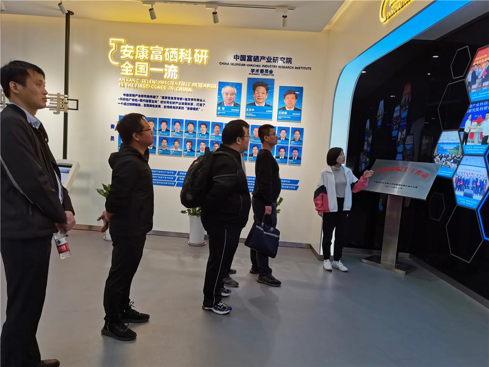 在研究院相关负责人的陪同下,教师首先参观了富硒产业研究院的展览区,了解安康富硒产业的发展历程,富硒产业研究院的组织构架和研发团队,以及部分具有代表性的富硒产品。接着,参观了富硒产业研究院的实验中心。农业农村部富硒产品开发与质量控制重点实验室主任、安康市富硒产品研发中心副主任唐德剑与公司教师展开座谈交流。希望科研工作者根据个人的研究发展,对富硒展业发展谈了自己的想法,结合个人科研方向找到了与硒产业发展的契合点,为安康的硒产业发展贡献自己的力量。