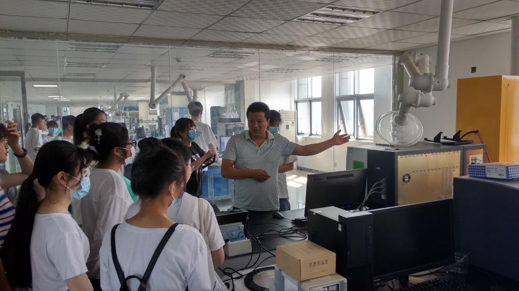 见习期间,员工观看了企业宣传片,参观了企业展厅,了解了企业中药材GAP种植、药品研发、生产及销售的基本情况。企业工程师带领同学们分别参观了公司的提取车间及研发中心实验室的精密分析仪器,详细介绍了公司特色产品“绞股蓝总苷胶囊”和“乳康胶囊”的提取、分离、制剂生产及质量控制的全过程。在整个见习过程中,同学们结合课本所学向企业技术人员积极提问请教,企业技术人员就具体问题作了耐心细致的讲解和回答,现场交流互动热烈。