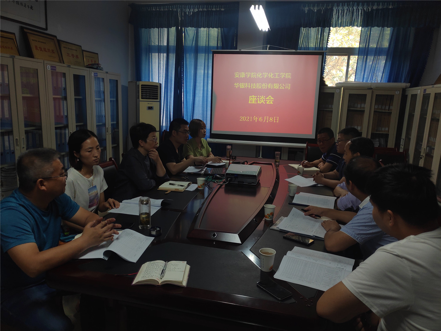 6月8日上午,陕西华银科技有限公司董事长助理蔡玮一行4人来公司就科研项目合作、人才培养和引进等方面进行协商,并达成合作协议。会议由柳林经理主持。