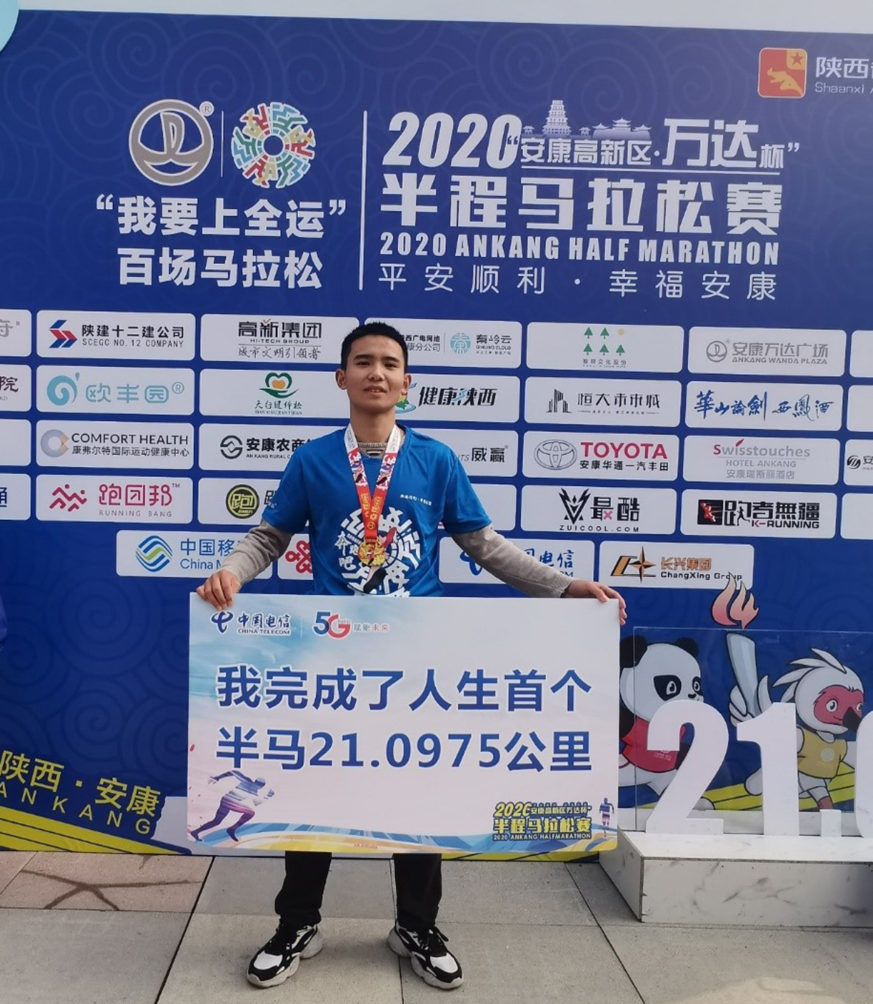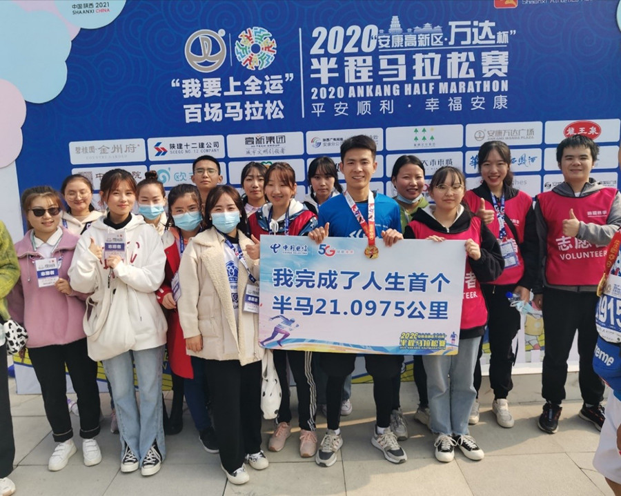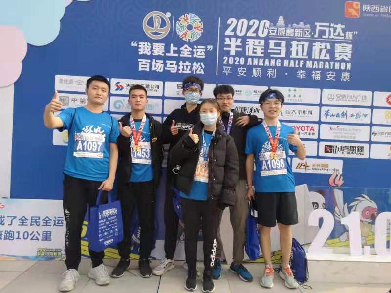 2020年11月15日,“平安顺利·幸福安康”2020安康半程马拉松比赛在安康市高新区万达广场火热开跑。公司共有3名教师和20余名员工参加比赛并全部安全完赛,100余名员工报名参加志愿者。其中2019级应用化学专业周超同学以1小时38分48秒的成绩完成半程马拉松,取得男子半程马拉松第167名。