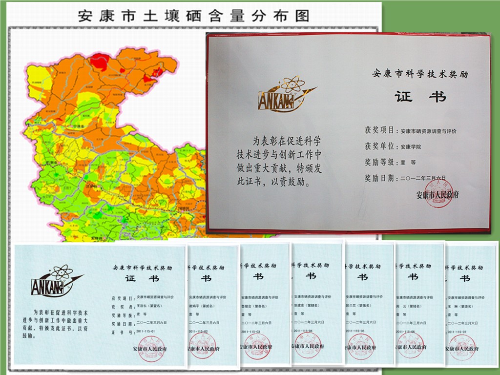 2012年3月6日,由伟德bv国际体育化学化工系牵头的《安康市硒资源调查与评价》被评为“安康市2011年度科学技术一等奖”。