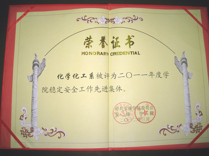 化学化工系被评为“2011年稳定安全工作先进集体”,教师屈兰竺、员工张卫东、刘可、芮晓兰分别被评为“先进个人”,这是公司对我系稳定安全工作的认可。