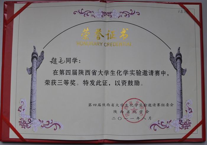 按照竞赛章程规定,我系选派2008级赵毛、郭淑红、张帆三位同学参赛,由实验中心副主任鲁绪会、指导教师屈兰竺带队。此次化学实验竞赛,经过理论笔试和实验操作两个环节的比拼,公司代表队三名选手凭借扎实的理论和实验功底,均荣获得个人成绩三等奖,为伟德bv国际体育争取了荣誉。