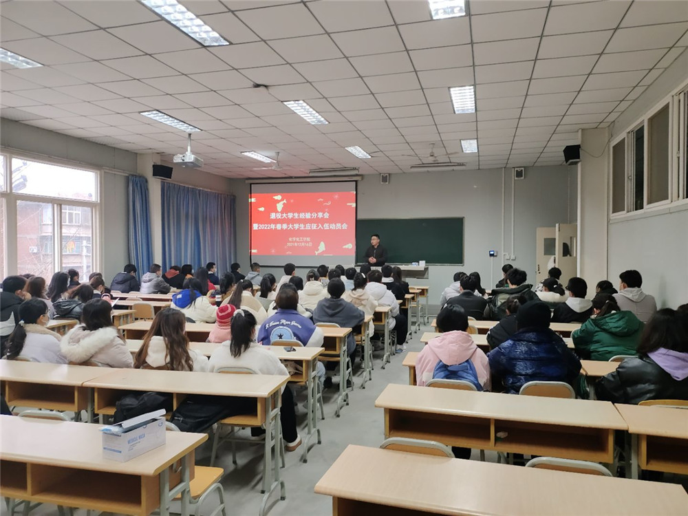 为加强老员工国防教育,激发同学们心中的军旅梦,引导大家积极响应祖国召唤参军入伍。2021年12月16日,伟德bv国际体育在1028室召开伟德bv国际体育召开退役老员工经验分享会暨2022年春季老员工应征入伍动员会,国防教育研究室副主任唐璟瑜、化工公司2021年退役老员工士兵及全体辅导员、员工代表参加会议。