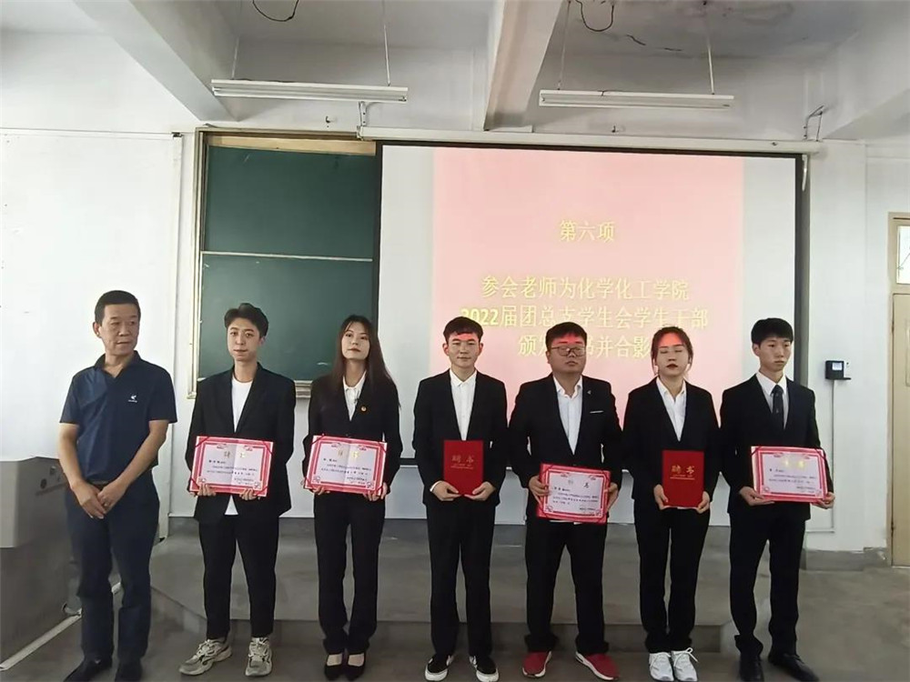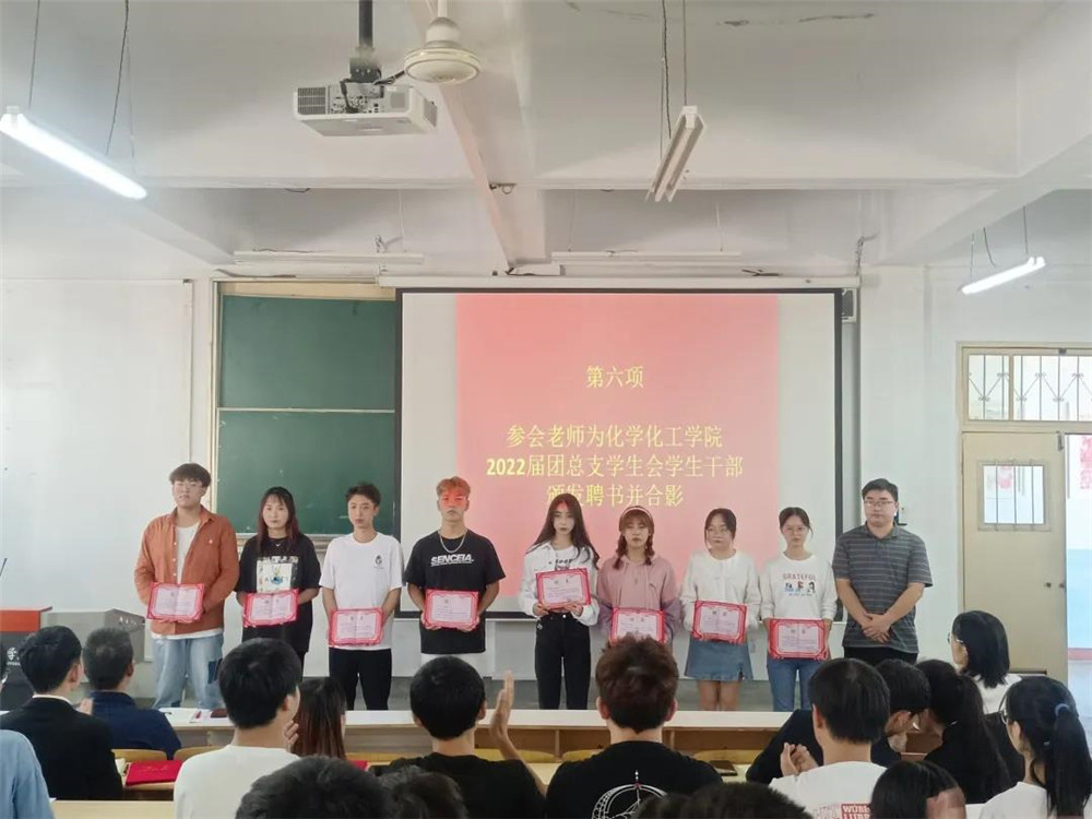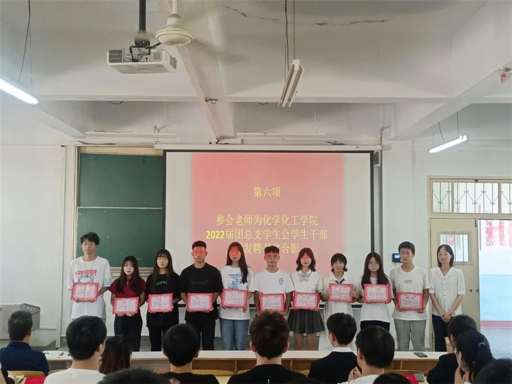 首先,由成沛锐宣读《化学化公司团总支员工会换届实施方案》,王瑜宣读了《2022届团总支员工会主席团名单》,于正豪宣读了《2022届团总支员工会部门负责人名单》和《2022届团总支员工会干事名单》,参会老师为公司2022届团总支员工会员工干部颁发聘书并合影。