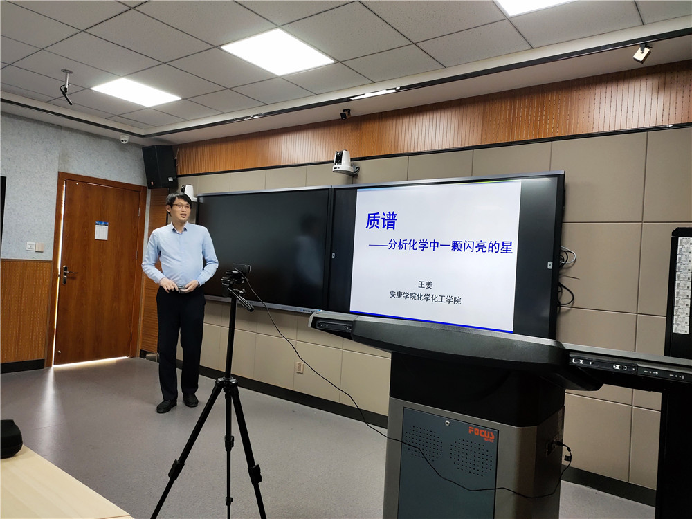 5月13日下午,公司王姜博士为伟德bv国际体育各专业师生做了一场题目为“质谱——分析化学中一颗闪亮的星”的学术讲座。讲座以线上线下相结合的方式开展,分为4个会场,共200名师生参与此次讲座。