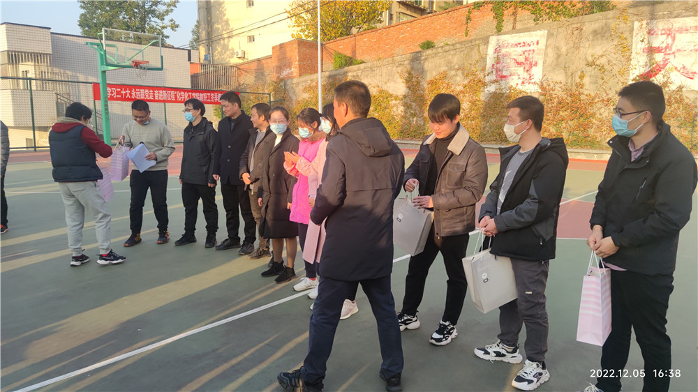 参赛教职工一个个精神抖擞,全身心投入其中,在运动中释放生活和工作的压力,散发着青春和活力。柳林经理和王永东为获奖运动员颁发了纪念品。