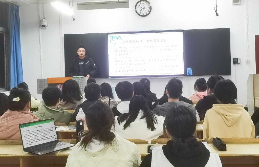 班会伊始,辅导员老师带领同学们了解知悉返校后相关事宜,回顾总结上学期班级工作,并就新学期相关工作进行了安排。班会主要围绕班级学风建设、心理危机排查,法制安全教育、第二课堂积分、评优入党等六个方面向同学们讲解,重点对心理健康教育和安全稳定工作进行讲解。通过老师们详细耐心的教育引导,有效地帮助同学们迅速调整状态,也引导同学们在新学期要针对自身的学习情况做好学习计划,不断地去突破自我、挑战自我。