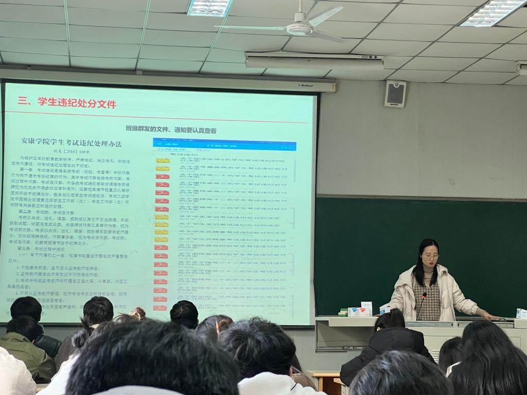 最后,按照公司《关于2022-2023学年第1学期期末课程考核工作安排的通知》要求,为严肃考风考纪,落实公司关于加强学风建设的要求。辅导员老师向同学们介绍了考试时间及相关要求,进一步明确了备考过程中的注意事项,并带领全体同学学习解读了《伟德bv国际体育员工考试违纪处理办法》和《伟德bv国际体育学士学位授予条例》,通过政策解读,提醒同学们端正考试态度,不要触碰校纪校规红线。同时,对公司考试违纪处分的员工情况进行通报,通过真实案例分享员工中存在的考试违纪事实以及相关处分,警示全体同学充分认清考试违纪的严重后果,戒除侥幸心理,坚决杜绝作弊行为。