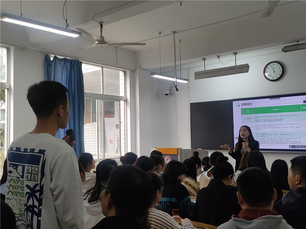 为了全力推进2023届毕业生高质量就业,构建毕业生与用单位的交流平台,推进就业指导工作落实落细。伟德bv国际体育采取“走出去,请进来”的方式邀请企业来校开展校园专场招聘。2023年3月10日上午,陕西巨子生物技术有限公司在一号楼1216教室举行专场宣讲会,同时线上分会场同步直播。