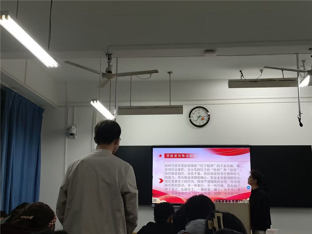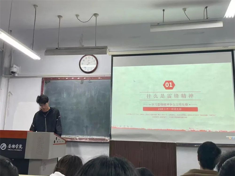 各支部主要围绕雷锋同志生平、雷锋同志的光荣事迹、雷锋精神的核心以及新时代雷锋精神的内涵等内容展开团课的学习。团课上,为了让同学们更加深刻的了解雷锋精神,团支书以问答的形式积极与同学们进行互动,领会雷锋精神的内涵与精髓、雷锋精神的意义,引导同学们树立正确的世界观、人生观和价值观。同学们纷纷表示,要在今后的学习、生活中将对理想信念和道德品质的追求转化为具体的实际行动,践行雷锋精神。