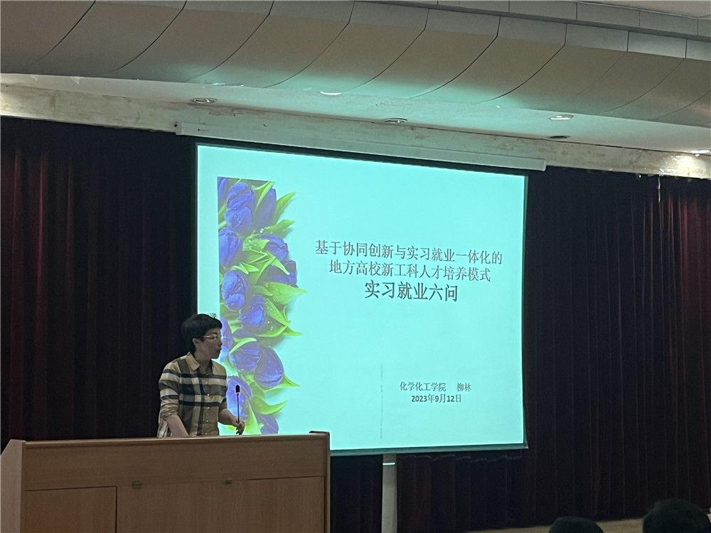 接着,副经理黄婷就新工科背景下应用型人才培养中专业实习的重要作用,从培养目标、专业实习重要性、实习就业一体化、实习安排这四个方面向同学们进行介绍。她讲到,大学期间的专业实习是为了让同学们更好了解并适应真实的工作环境,拓宽员工的专业视野和技能,培养员工的创新意识和团队合作精神,为就业奠定基础,从而促进老员工的职业发展和就业能力的提升。