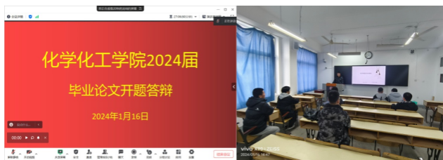 2024年1月16日下午,制药工程专业20级员工分成三组在1319、1317和1314教室进行2024届毕业论文开题答辩。每组由三位答辩老师组成,黄九林、郭林新和杨凌鉴老师分任组长,各组采用线上线下结合方式,顺利完成了开题答辩。