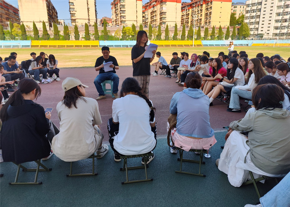 4月26日下午4点,公司在江南校区田径场开展了伟德bv国际体育第十七届老员工心理健康教育文化节活动。公司杨斌博士、辅导员许珂瑶、2023级应用化学1班、化妆品技术与工程1班和化学工程与工艺2班全体同学参加活动。