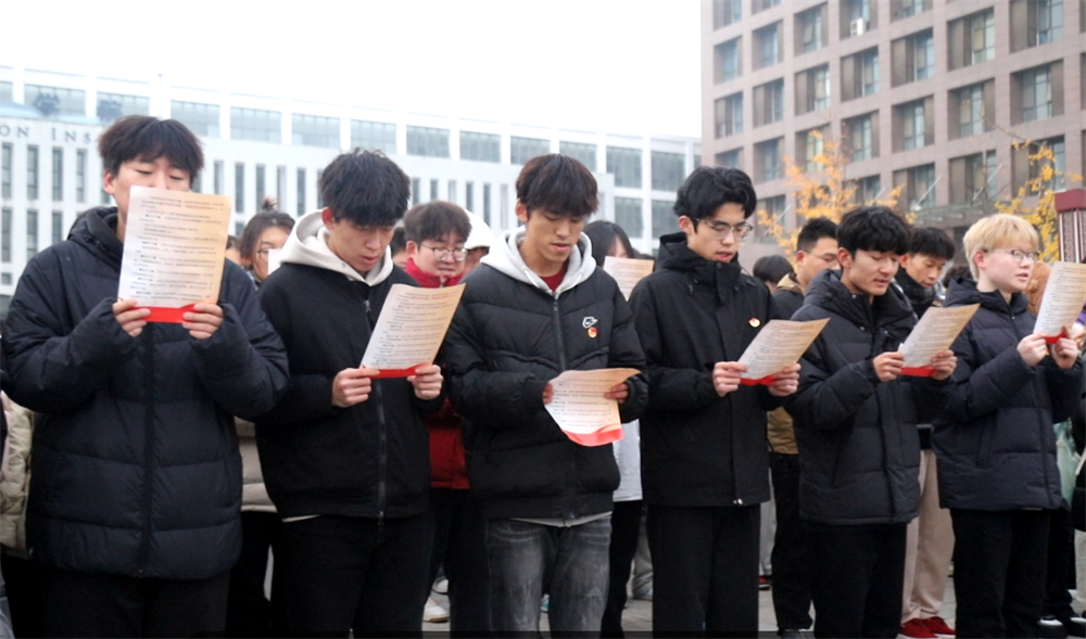 2024年12月2日,伟德bv国际体育师生齐聚江北校区国旗台前,共同参与升旗仪式与宪法晨读活动。