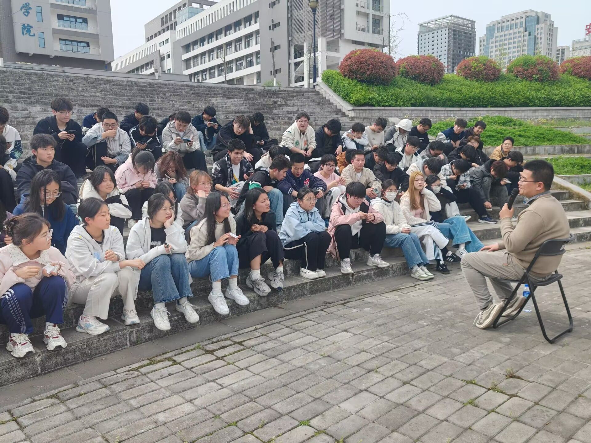 活动伊始,闫超咸博士以一曲吉他弹唱《南方姑娘》点燃了同学们的热情,为活动营造了轻松愉悦的氛围。在分享环节,闫博士以"成长型思维培养与学术生涯规划"为主线,讲述了个人的求学成长经历。从本科阶段学习方法的构建、科研兴趣培养,到研究生阶段导师选择策略、研究方向研判;从专业适配性评估到学业困境突破,通过翔实的案例分析,引导同学们建立“在探索中明晰目标,在实践中实现个人价值"的成长理念。